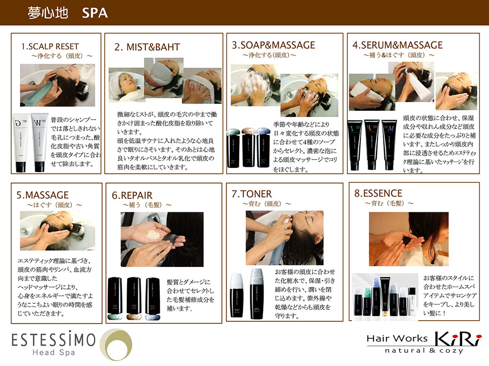 | 夢心地 SPA 頭皮クレンジング・ミスト加温・タオルバス・シャンプーマッサージ・セラム(美容液)マッサージ・リペアトリートメント・化粧水 |